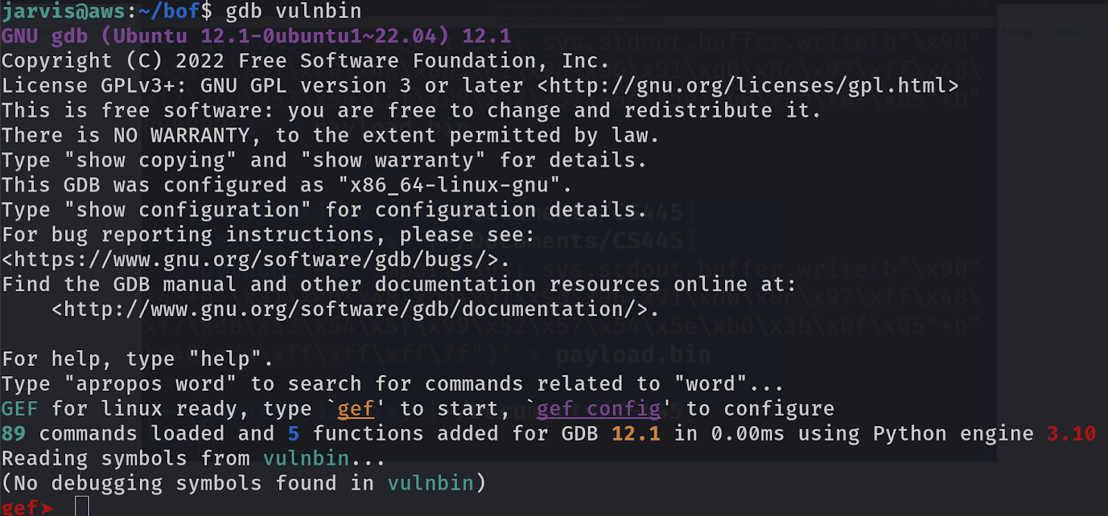 gdb vulnbin