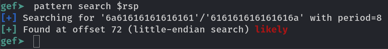 Gef will find offset for you, 72 in this case with little endianess
