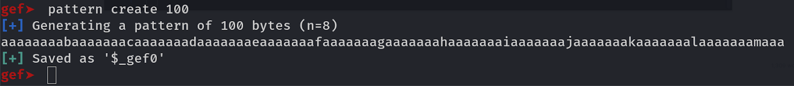 Run this command inside gdb to get a cyclic string of 100 bytes