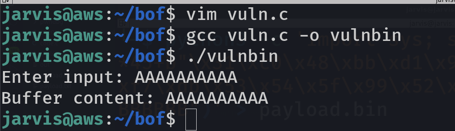 gcc vuln.c -o vulnbin